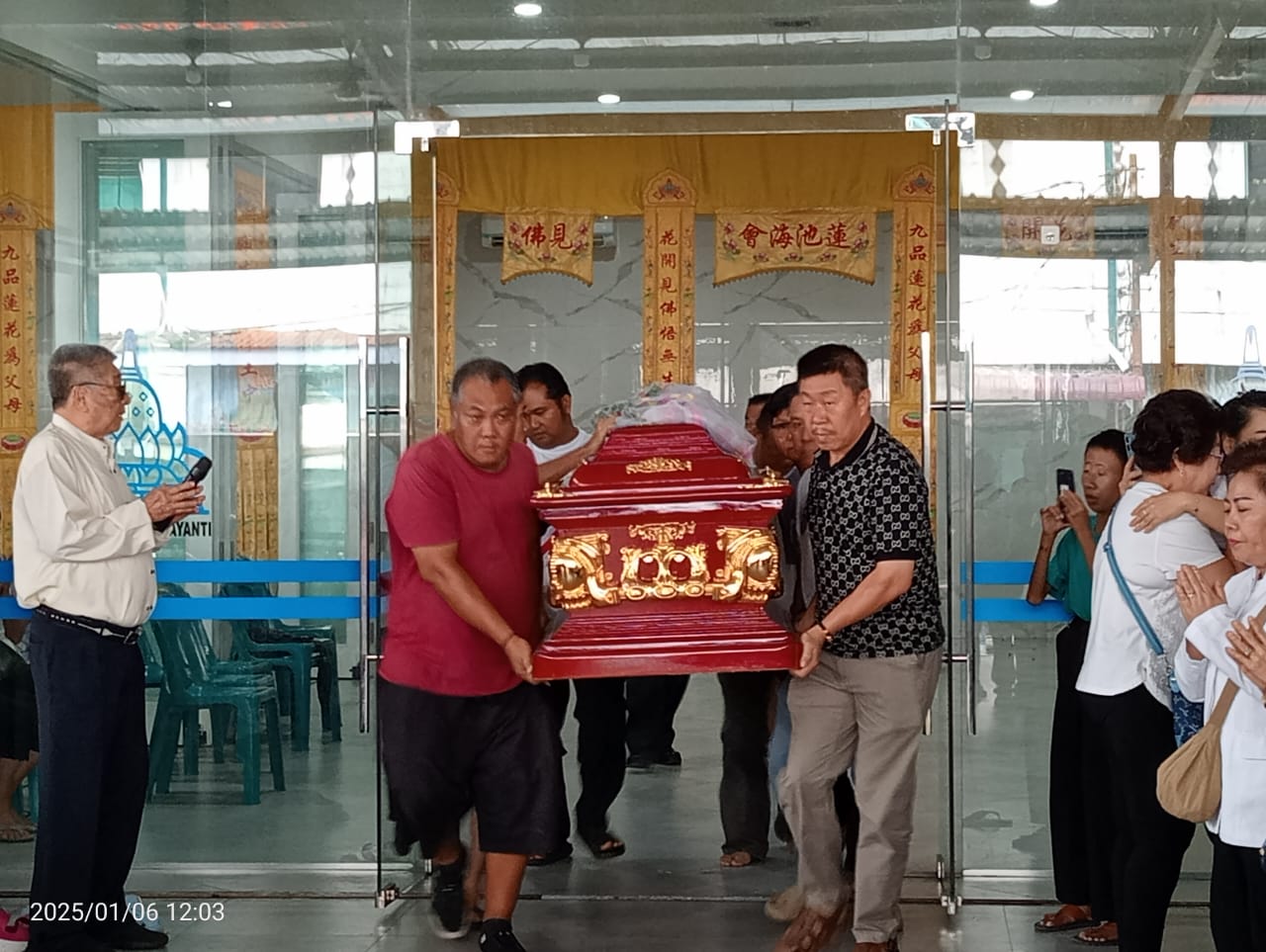 LABUHANBATU, INVOCAVIT. COM – Dandim 0209/LB, Letkol Inf Yudy Ardiyan Saputro SIP yang diwakili Kasdim Mayor Inf SH Tanjung melepas jenazah David Chan alias Tan Bun An yang merupakan Wartawan Senior di Labuhanbatu dari rumah persemayaman Buddha Jayanti, di Jalan Abdurrahman Rantauprapat, Senin (6/1/2025) siang.