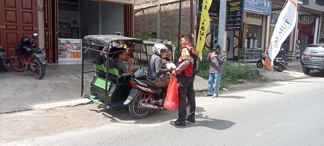 Polres Labusel bagikan nasi kotak ke penarik becak.(ist).
