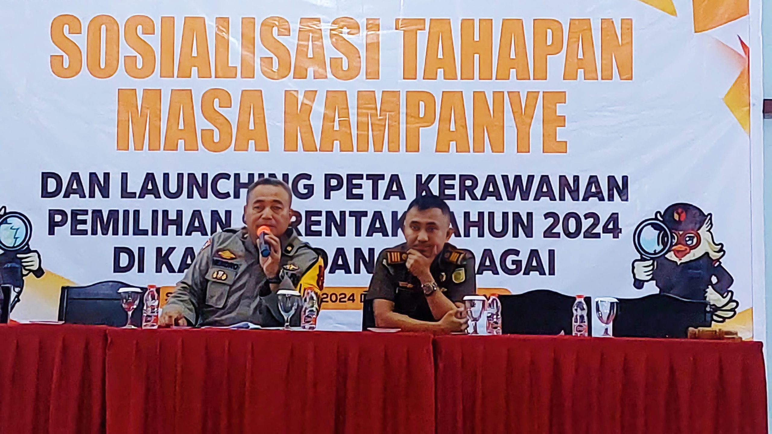 Sosialisasi ini dilaksanakan untuk memberi pemahaman kepada partai politik, Ormas, dan insan pers tentang proses tahapan massa kampanye, dan peta kerawanan Pilkada serentak 2024.