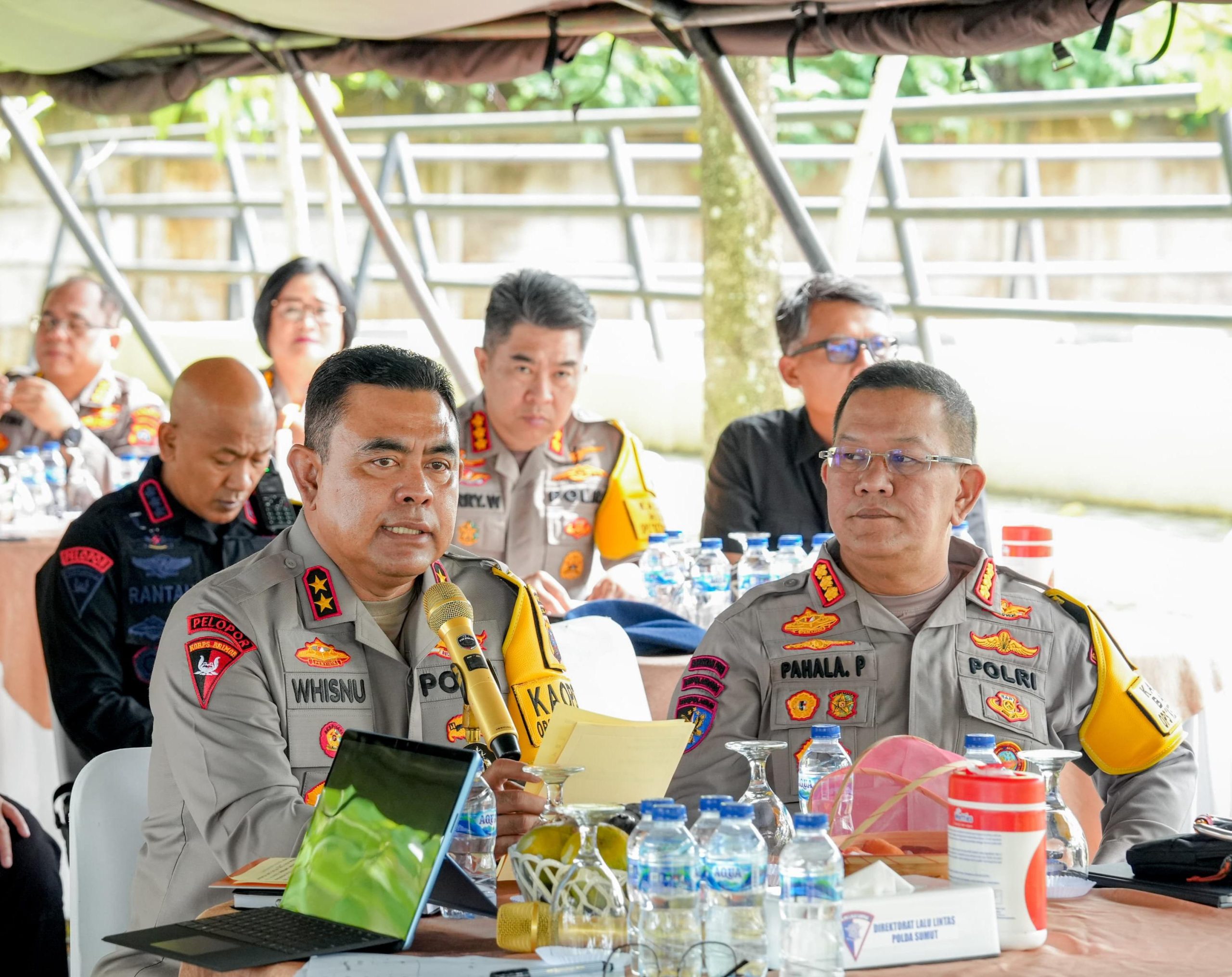 Kapolda Sumut Irjen Pol Whisnu Hermawan Februanto memimpin Rapat Analisa Evaluasi (Anev) Operasi Ketupat Toba 2025.(ist).