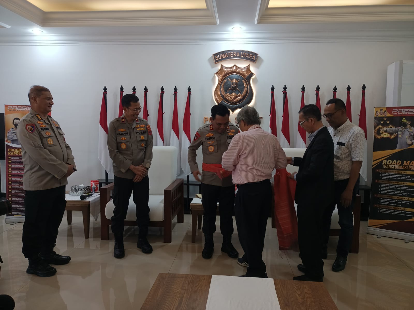Audiensi panitia dengan Kapolda Sumatera Utara ini berlangsung hangat dalam suasana penuh kekeluargaan. Rombongan panitia bahkan menyematkan ulos pamonting kepada Irjen Pol Panca Putra Simanjuntak sebagai bentuk dukungan mereka atas kinerja Kapolda yang juga disertai dengan doa agar senantiasa sukses dalam mengawal terciptanya suasana kamtibmas yang kondusif di Sumatera Utara.