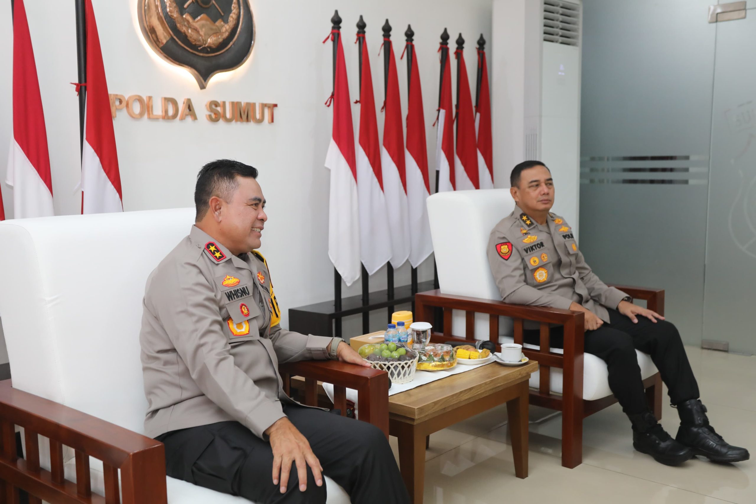 Kapolda Sumut Irjen Whisnu Hermawan Februanto terima Kunker Ka Divkum Mabes Polri Irjen Viktor Theodorus.(ist).