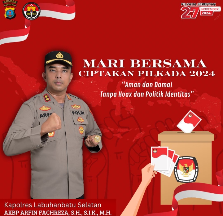 Untuk itu, Kapolres Labuhanbatu Selatan (Labusel), AKBP Arfin Fachreza, SH, SIK, MH mengajak seluruh warga masyarakat di wilayah hukumnya untuk dapat mewujudkan pilkada 2024 aman dan damai.