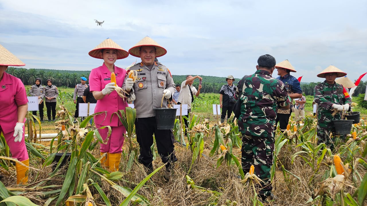 Kapolres Labusel, AKBP Aditya SP Sembiring M panen raya jagung kuartal III bersama forkopimda, Kamis (4/9/2025).(ist).