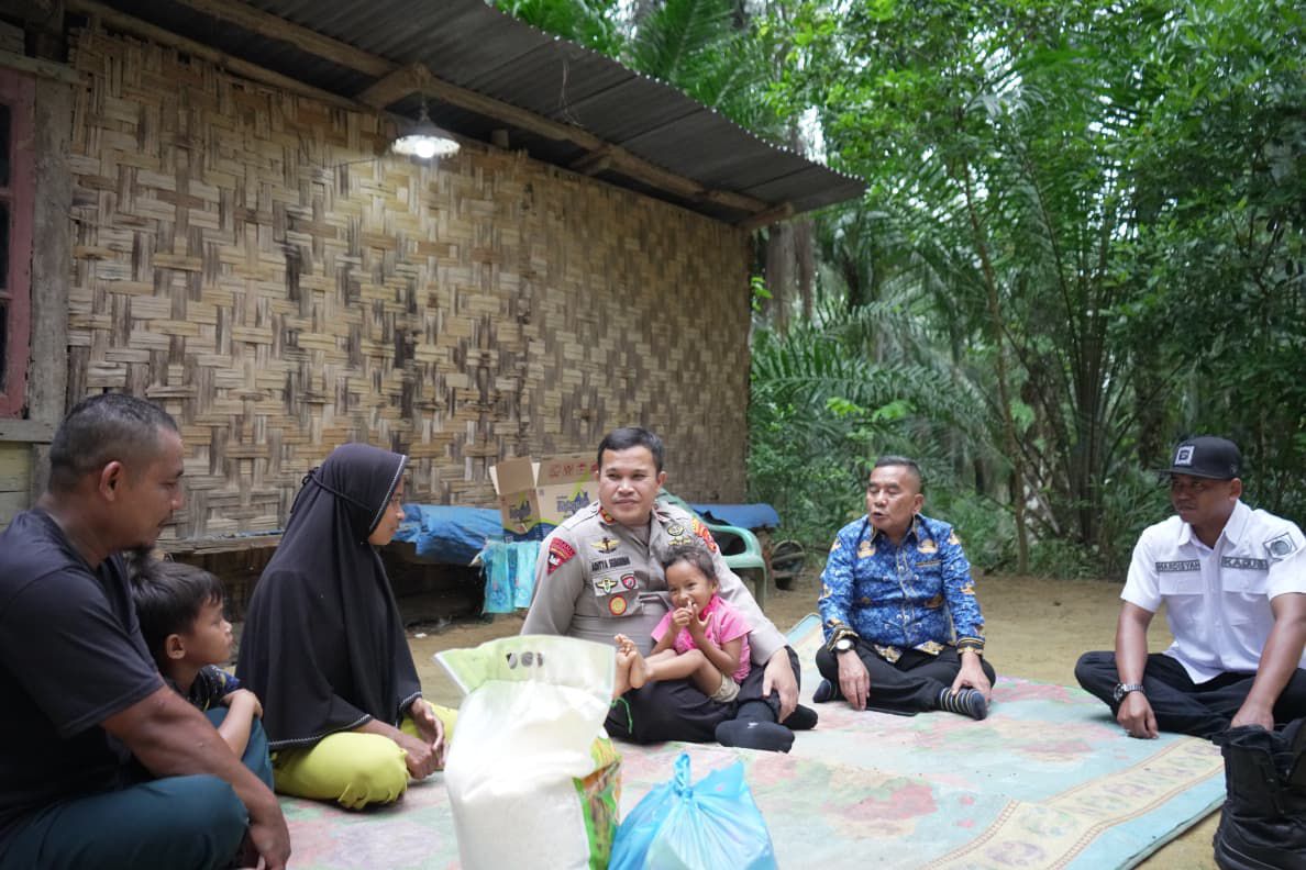 Dalam kesempatan itu, Kapolres menyerahkan bantuan sembako sekaligus melakukan peninjauan langsung kondisi rumah keluarga Junaidi yang diketahui sangat memprihatinkan dan tidak layak huni.