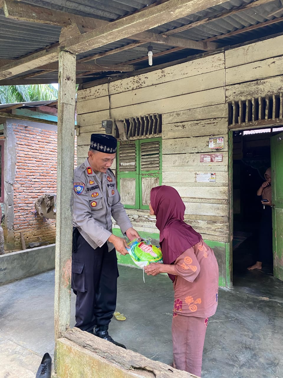 Diwakili Kasat Binmas Polres Labusel, AKP Henry Surbakti menyerahkan bansos berupa masing-masing 10 kg beras kepada warga di Dusun Simaninggir Atas, Desa Sosopan, Kecamatan Kotapinang, Kabupaten Labusel, Senin (3/3/2025).