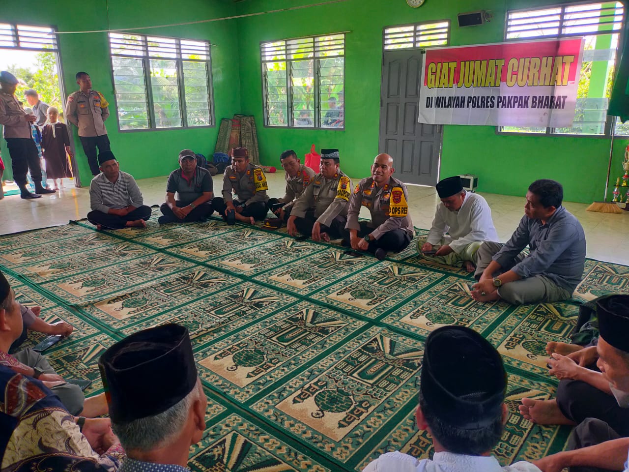 Kapolres Pakpak Bharat AKBP Oloan Siahaan, S.I.K., M.H melaksanakan kegiatan Jumat Curhat Di Mesjid An Nur Desa Ulu Merah.(ist).
