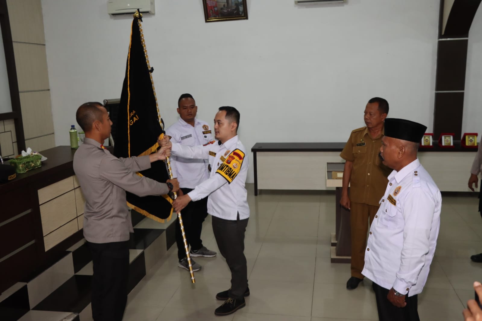 Kapolres Sergai AKBP Oxy Yudha Pratesta menyerahkan pataka kepada ketua Pokdarkamtibmas Kab Sergai.(ist).