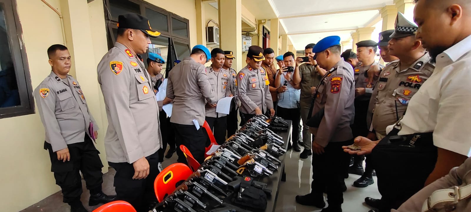 “Kegiatan ini merupakan bentuk pengawasan terhadap personel yang di pinjam pakaikan senjata api agar tidak disalah gunakan,” ucap Kapolres