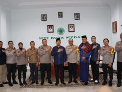Setelah dari Al Jam’iyatul Washliyah, Kapolrestabes Medan KBP Gidion bersama rombongan melanjutkan kunjungan ke Majelis Ulama Indonesia (MUI) Kota Medan, Jalan Nusantara, Kelurahan Komat III, Kecamatan Medan Kota.