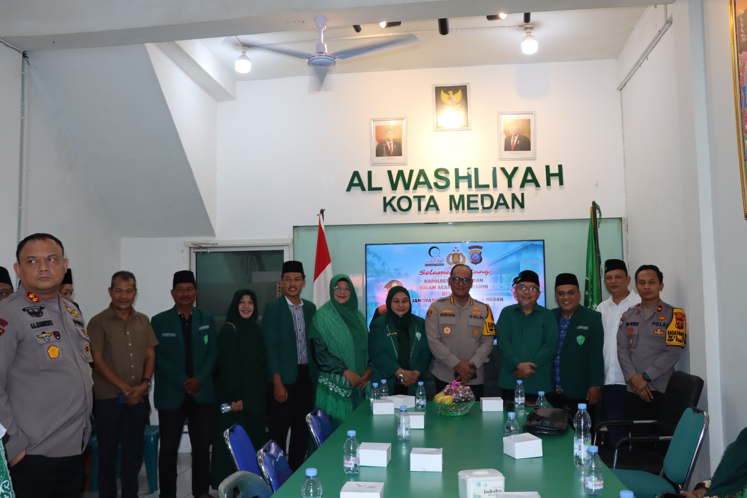 Kapolrestabes Medan KBP Gidion Arif Setyawan Poto bersama dengan pengurus Al Washliyah Kota Medan disela-sela kunjungan silaturahmi, Kamis (16/10).(ist).