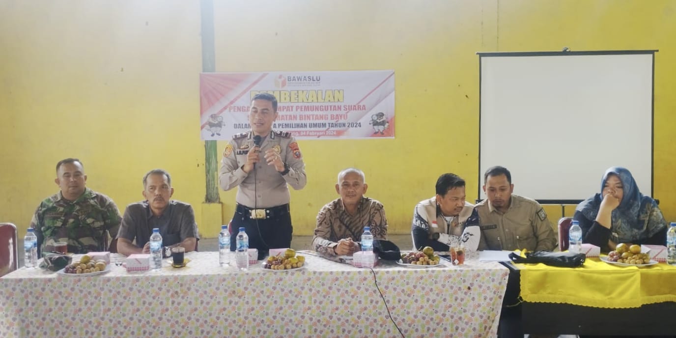 Kapolsek Kotarih, Polres Serdang Bedagai (Sergai), Sumut, melakukan pendekatan lintas sektoral ke panitia penyelenggara Pemilu lewat program ‘siap peduli’ memberikan pembekalan pada Minggu (04/02/2024) di GOR Futsal Desa Bandar Magodang Kecamatan Bintang Bayu Kabupaten Serdang Bedagai.