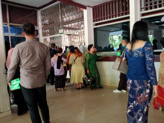 Para orangtua wisudawan/ti berkumpul dipintu masuk yang telah ditutup.(jos Tambunan).