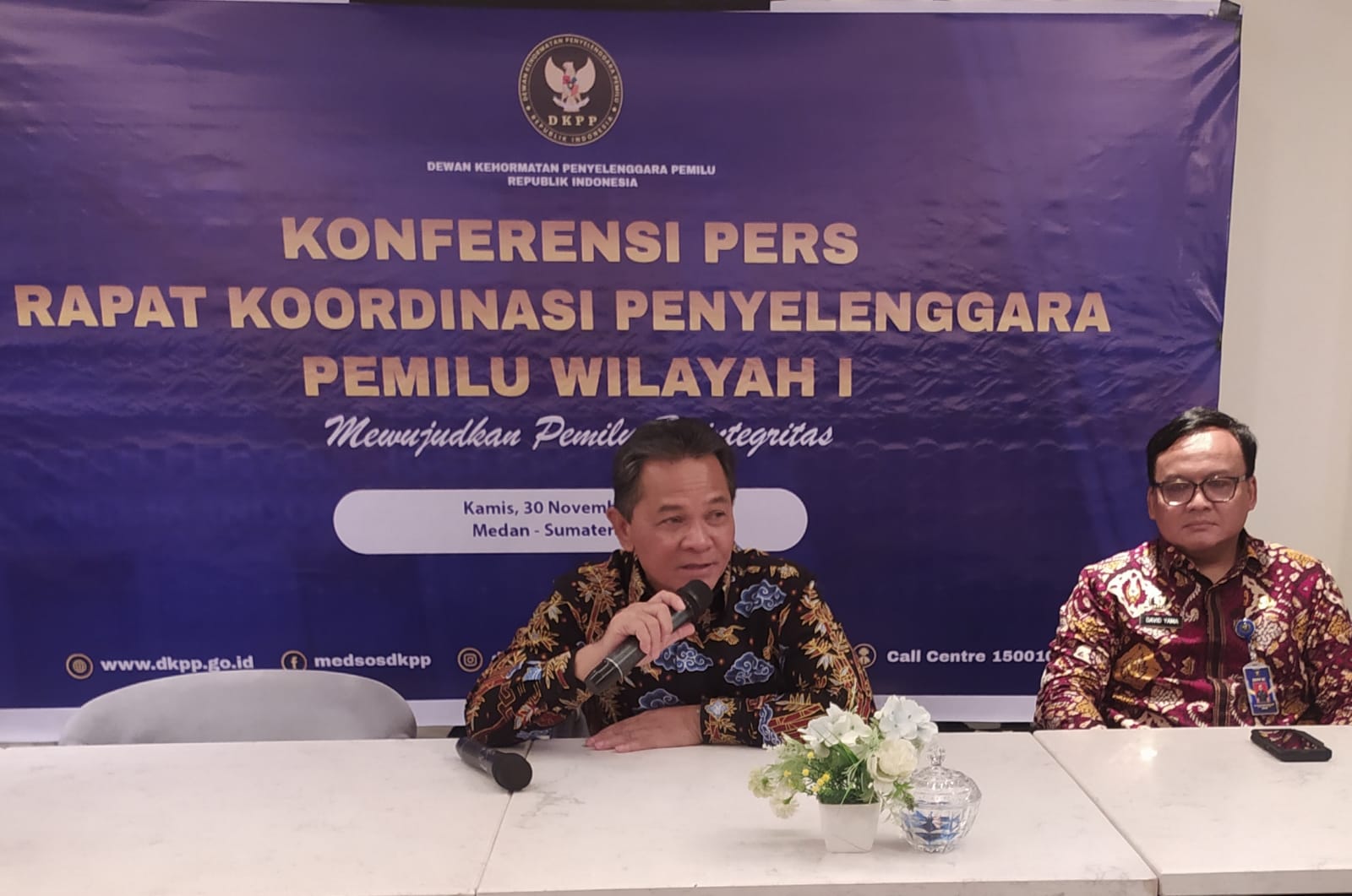 MEDAN, INVOCAVIT.COM – Dewan Kehormatan Penyelenggara Pemilu (DKPP) Republik Indonesia (RI) melaksanakan Rapat Koordinasi (Rakor) penyelenggara Pemilu di Wilayah I, di Le Polonia Hotel, Jalan Jenderal Sudirman, Medan, Kamis (30/11/2023).