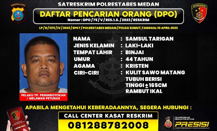 Untuk diketahui Samsul Tarigan, di DPO diduga terlibat penyerangan dan pengendali  barak narkoba dan judi di Dusun Tanjung Pamah, Desa Namorube Julu, Kecamatan Kutalimbaru, Kabupaten Deliserdang, saat Polrestabes Medan melakukan penggerebekan di Diskotek Sky Garden.