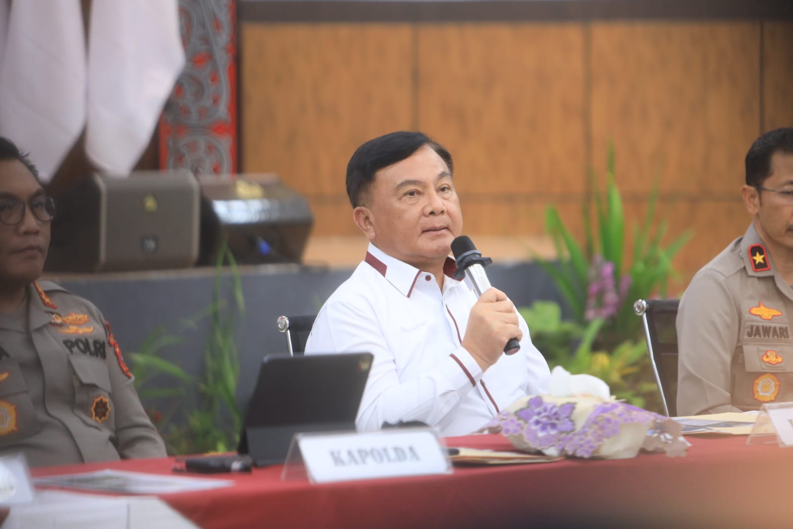 Sekretaris Kompolnas Irjen Pol (purn) Dr.Benny Mamoto pada konprensi pers kematian Bripka Arfan Saragih di Mapoldasu.(jos tambunan).