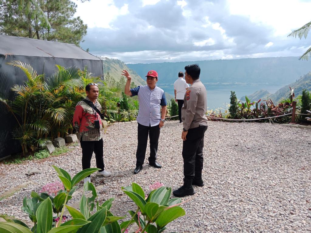 Kapolres Toba AKBP Taufiq Hidayat Thayeb bersama Kapolsek Lumban Julu AKP Robinson Sembiring dan Perwira Pendamping Polda Sumut serta staf BPODT Good Man Manurung mendampingi Tim Kompolnas menuju spot spot yang ada di lokasi pemandangan di Caldera sambil bincang bincang terkait pola Pengamanan Polri pada Objek vital di kawasan Pariwisata Super Prioritas Nasional.
