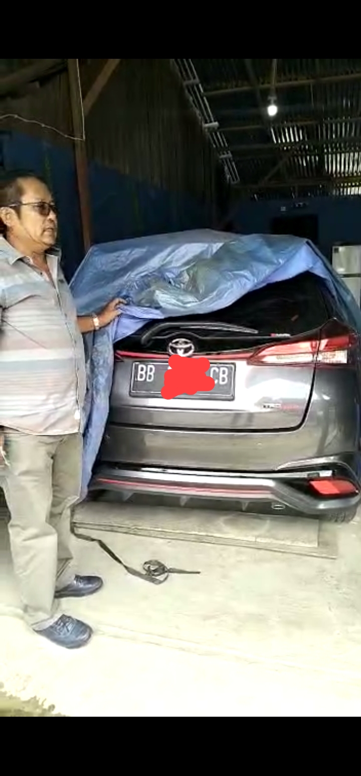 Hasiholan Sitanggang menunjukkan mobilnya yang mati pajak akibat ulah almarhum Bripka AS yang bertugas di Samsat Pangururan (ist)