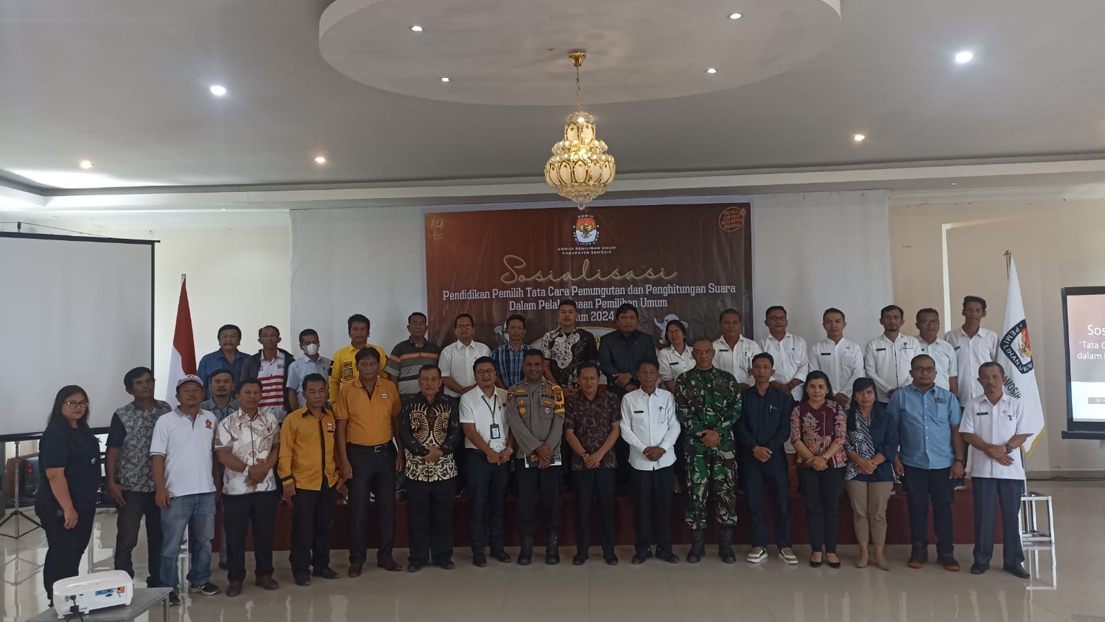Komisi Pemilihan Umum Kabuptaen Samosir Sosialisasikan tata cara pemungutan dan penghitungan suara Pemilu Umum tahun 2024 di Hotel JTS Parbaba.(ist).