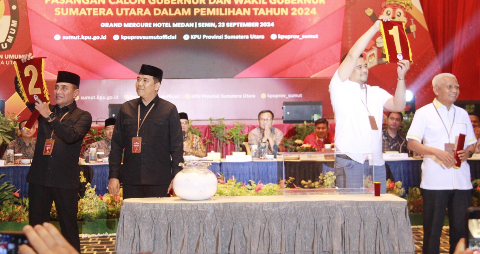 Pengundian nomor urut tersebut diikuti dua pasangan Calon Gubernur dan Wakil Gubernur Sumut, Edy Rahmayadi-Rahmayadi-Hasan Basri Sagala dan Muhammad Bobby Afif Nasution-Surya.