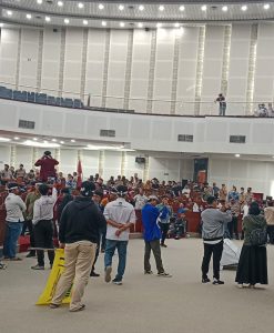 INVOCAVIT.COM, MEDAN- Ratusan mahasiswa Cipayung Plus berhasil menguasai gedung DPRD Sumut Jalan Imam Bonjol Medan. Bahkan, mereka masuk dan naik keatas meja di ruang Paripurna, setelah merobohkan pintu gerbang kantor wakil rakyat tersebut, Kamis (25/1/2023).