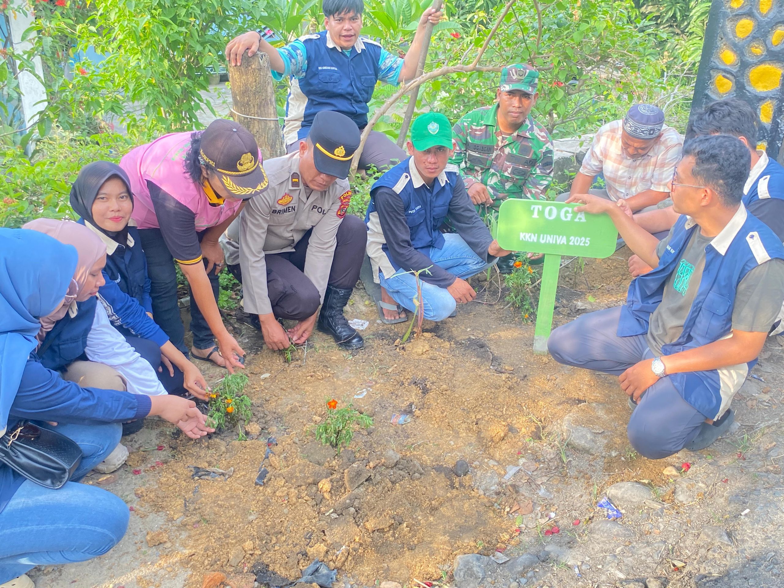 SERGAI, INVOCAVIT.COM: Mahasiswa Kuliah Kerja Nyata (KKN) Universitas Al Washliyah (UNIVA) Medan bersama dengan anggota TNI-Polri dan warga setempat melakukan aksi penanaman tanaman obat keluarga (Toga) di Desa Pekan Tanjung Beringin, Serdang Bedagai (Sergai), Sumatra Utara, pada Sabtu (30/8/2025).