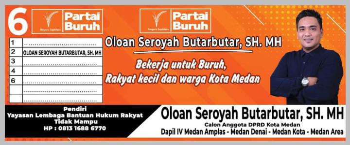 Oloan Seroyah Butarbutar SH MH, berharap agar warga Kecamatan Medan Amplas – Kecamatan Medan Denai – medan Kota dan Kecamatan Medan Area bermurah hati memberi kesempatan untuk memilihnya guna membuktikan dirinya bekerja untuk rakyat kota Medan pada khususnya.(rz).