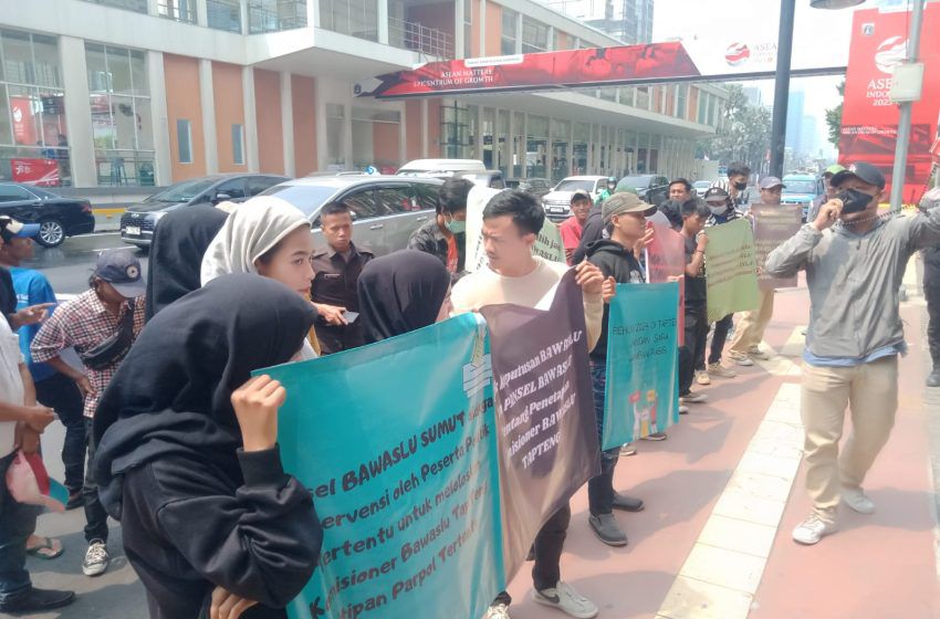INVOCAVIT.COM, JAKARTA – Puluhan massa berunjukrasa ke Kantor Badan Pengawas Pemilu (Bawaslu) RI di Jakarta, pada Jum’at (25/8/2023) pagi. Lembaga negara yang bertugas mengawasi pemilu tersebut diminta untuk membatalkan keputusan penetapan komisioner Bawaslu Kabupaten Tapanuli Tengah, Provinsi Sumatera Utara.