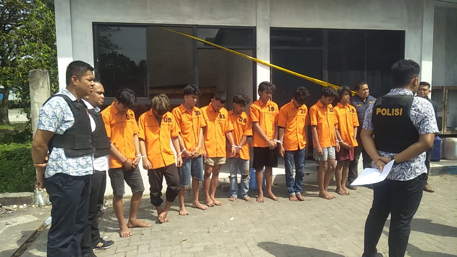 Para tersangka inisial R (18), JAP (18), AP (18), DGR (18), SF (19), RP (18), ES (20), MTD (20) dan AR (18).