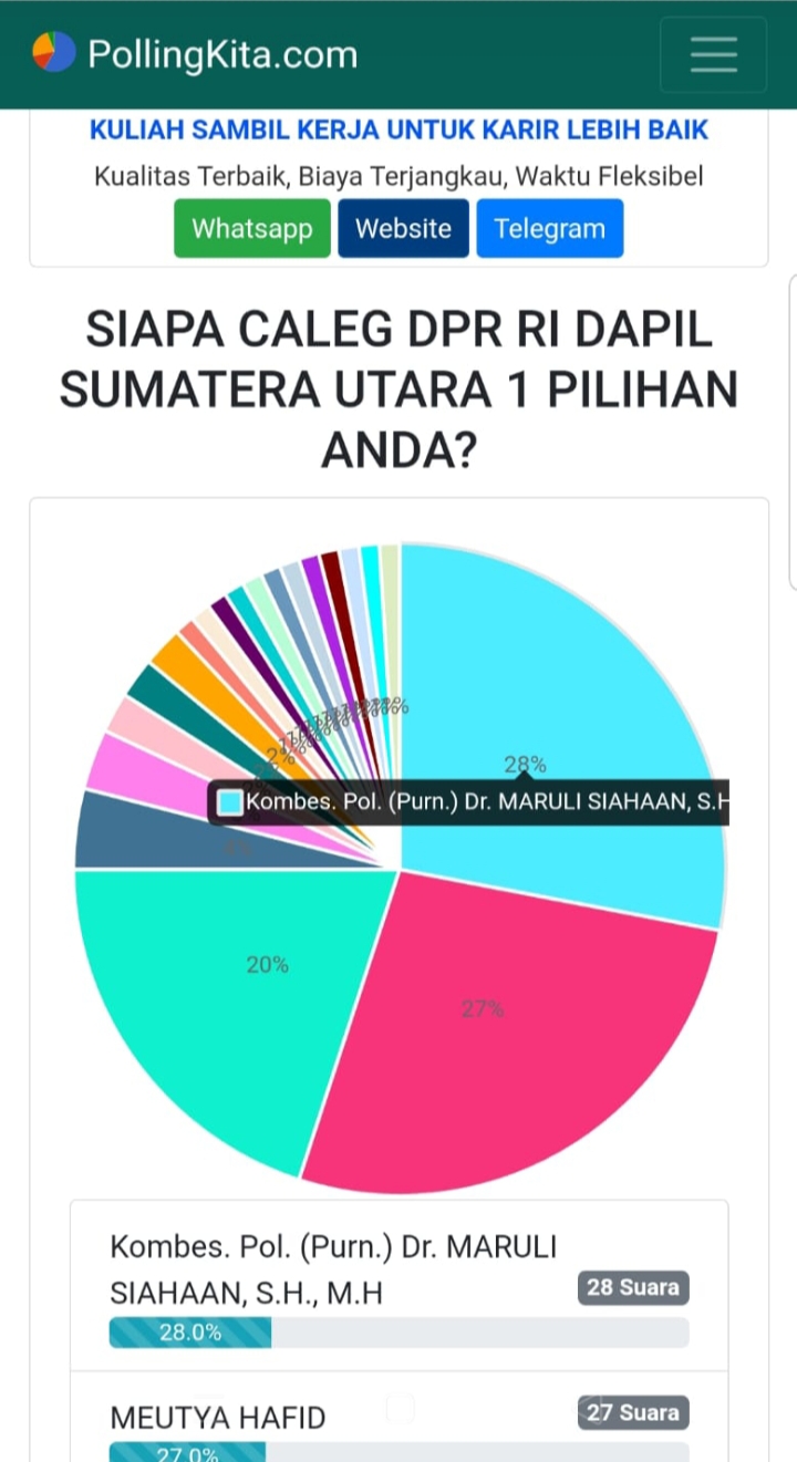 Dari hasil “Polling Kita” saat ini, nama Kombes Pol (purn) Dr. Maruli Siahaan SH MH mengungguli petahana dari Partai Golkar, Meutya Hafid.