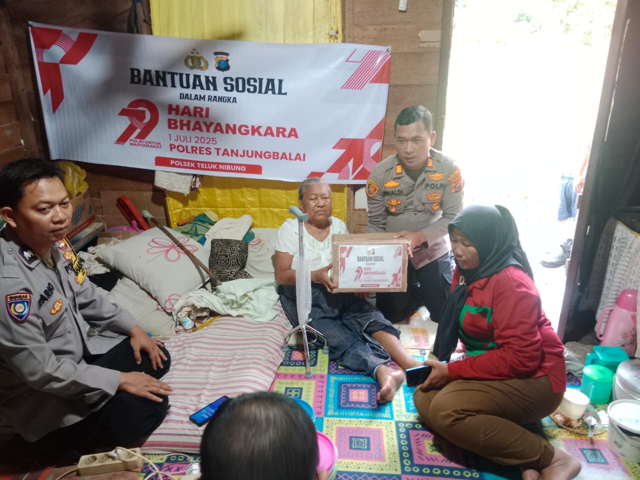 TANJUNG BALAI, INVOCAVIT.COM-Dalam rangka menyambut Hari Bhayangkara ke-79 yang jatuh pada 1 Juli 2025, Polsek Teluk Nibung Polres Tanjung Balai menggelar kegiatan sosial berupa pemberian bantuan sembako kepada warga kurang mampu, Senin (16/6/2025).