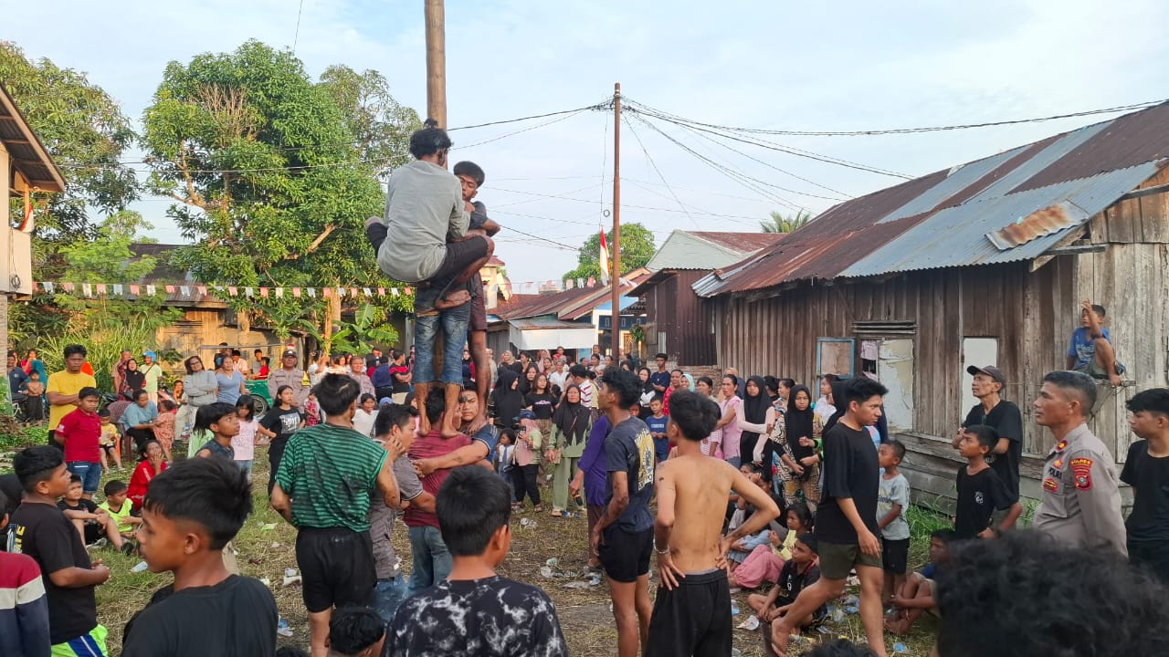 Panjat Pinang semarak HUT ke 80 RI diselenggarakan Polsek TBS pada 17 Agustus.(ist)