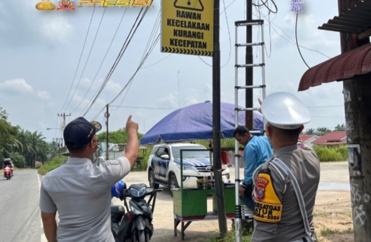 Minimalisir Laka Lantas, Polres Labusel Pasang Imbauan dan Bagikan Brosur