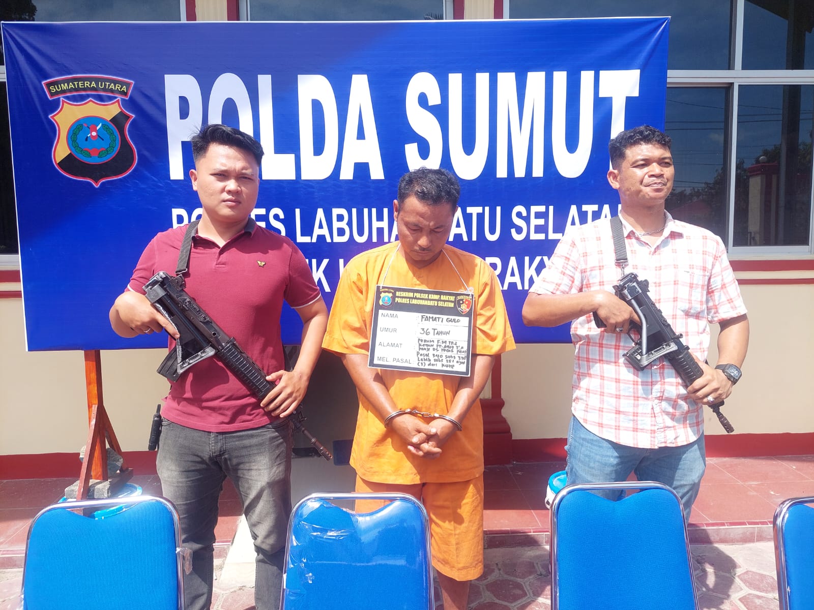 Setelah melakukan serangkaian penyelidikan akhirnya Polsek Kampung Rakyat, Polres Labusel berhasil meringkus seorang tersangka, yakni Fatmati Gulo (40), warga Perumahan F.34 TP 2 Kebun PT ABM Teluk Panji, Kampung Rakyat, Labusel.