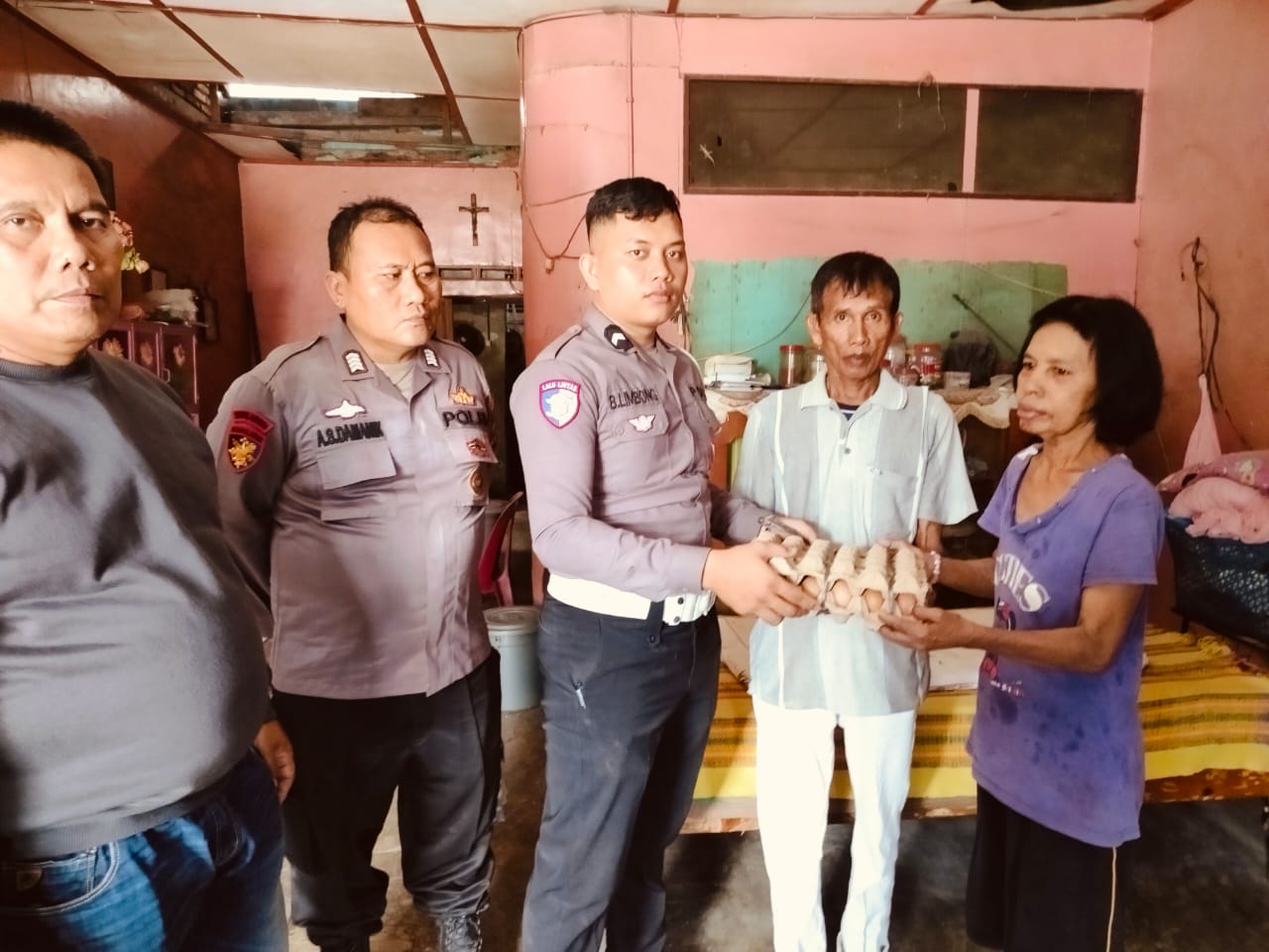 Dengan niat yang hiklas petugas Polisi bagikan bahan simbako kepada warga yang membutuhkan.(ist)