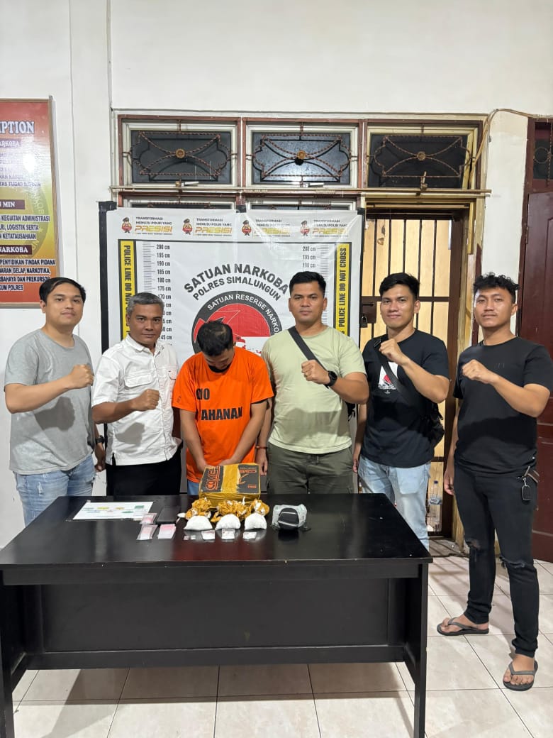 Setelah melakukan pengintaian, Tim Satuan Narkoba Polres Simalungun melakukan penggerebekan di rumah tersangka. Dalam penggeledahan, petugas menemukan barang bukti berupa tiga bungkus plastik transparan besar, tiga bungkus plastik klip sedang, dan dua bungkus plastik klip kecil yang semuanya berisi narkotika jenis sabu dengan total berat brutto 336,51 gram atau 3,3 ons.