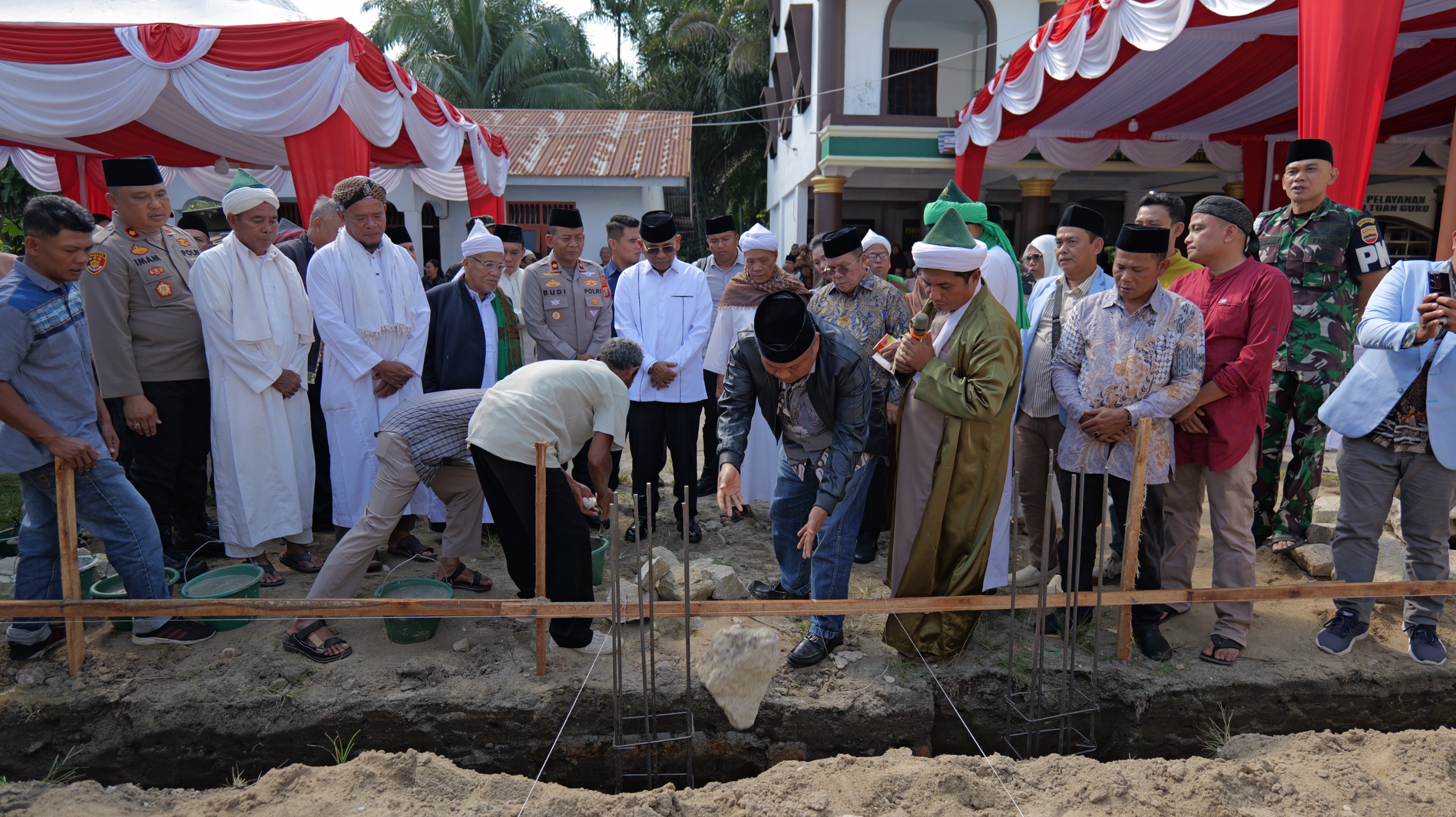 Sugiat Santoso melakukan peletakan batu pertama Rumah Takhfiz di Pondok Persulukan Tuan Guru Batak.(ist)