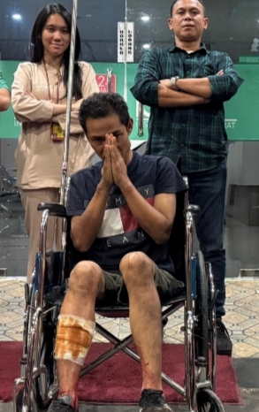Akhirnya, pelaku ditangkap dan terpaksa kakinya ditembak polisi karena mau melarikan diri,