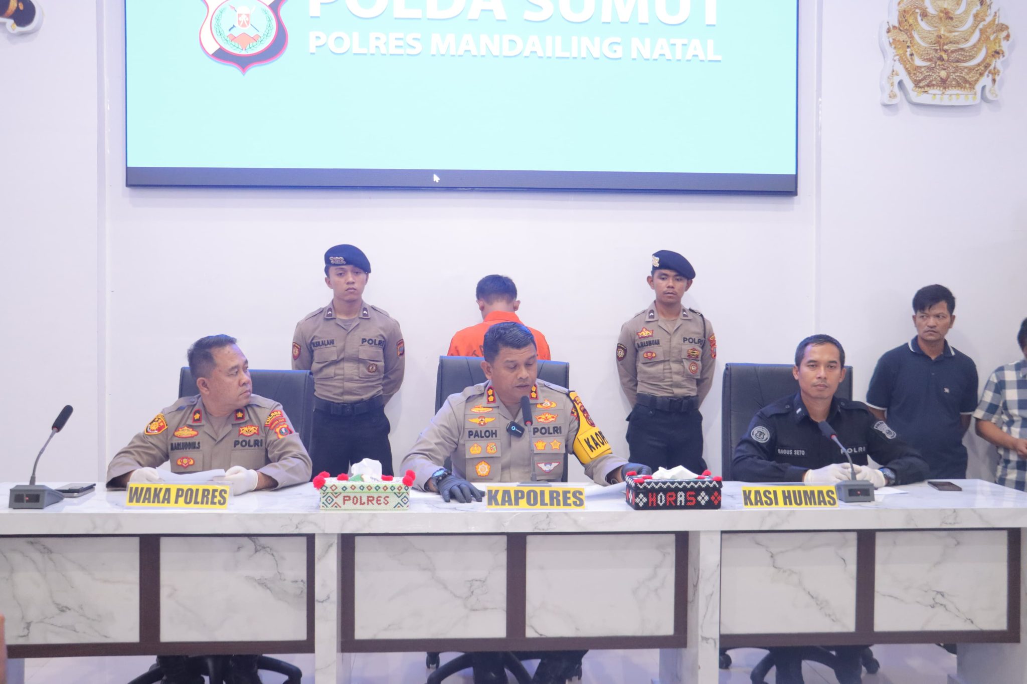 Polisi sedang melakukan konprensi pers pengungkapan kasus pembunuhan Arni Lubis (65).(ist)