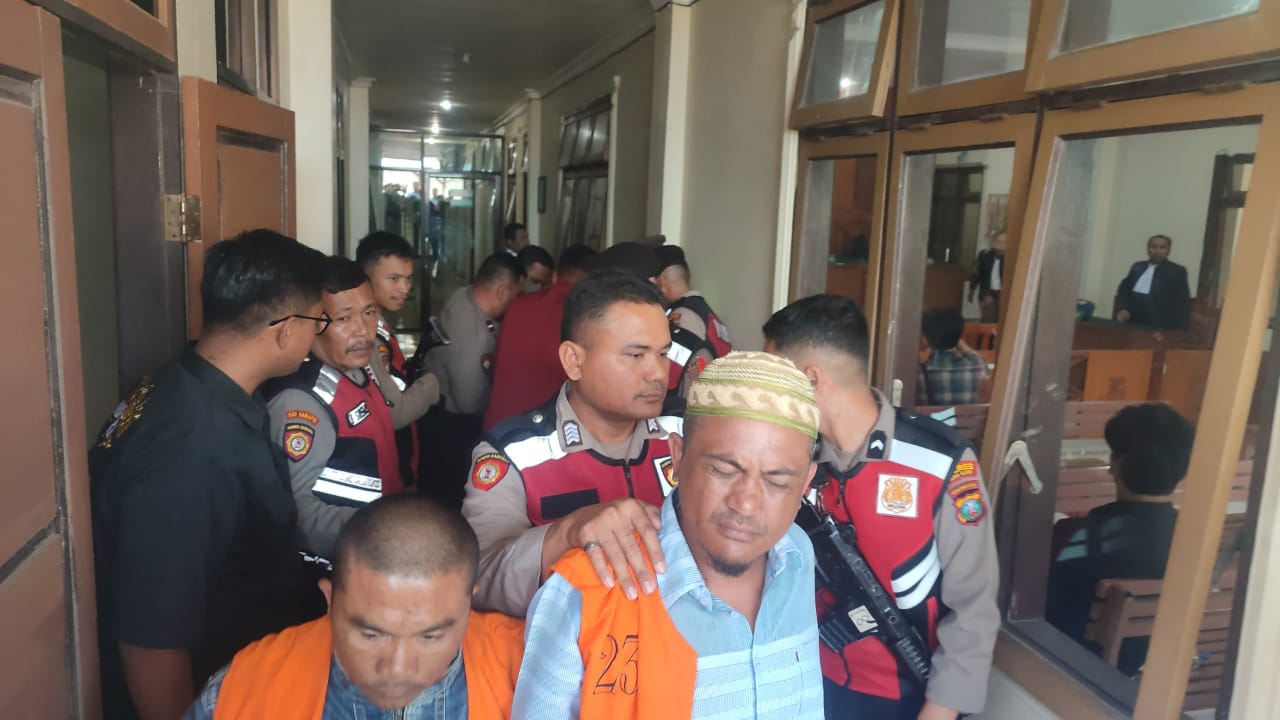 Para terpidana pembunuh wartawan di Kabanjahe, Rico Pasaribu seusai menjalani sidang vonis di PN Kabanjahe, Kamis (27/3).(ist).
