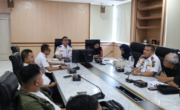 Kadishub Perhubungan Propinsi Sumut Agustinus Panjaitan sedang melakukan rapat kordinasi untuk persiapan Mudik Gratis Nataru 2024.(ist).