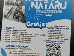 MEDAN, INVOCAVIT.COM – Pemerintah Provinsi Sumatera Utara, melalui Dinas Perhubungan (Dishub) Sumut, kembali menghadirkan program Mudik Gratis Natal 2024 dan Tahun Baru 2025 (Nataru). Sebanyak 1.200 kursi disiapkan untuk memfasilitasi masyarakat yang ingin merayakan momen spesial bersama keluarga di kampung halaman. Keberangkatan akan dimulai pada Sabtu, 21 Desember 2024, dari Terminal Terpadu Amplas, Medan, dengan rute-rute strategis yang menjangkau berbagai wilayah.