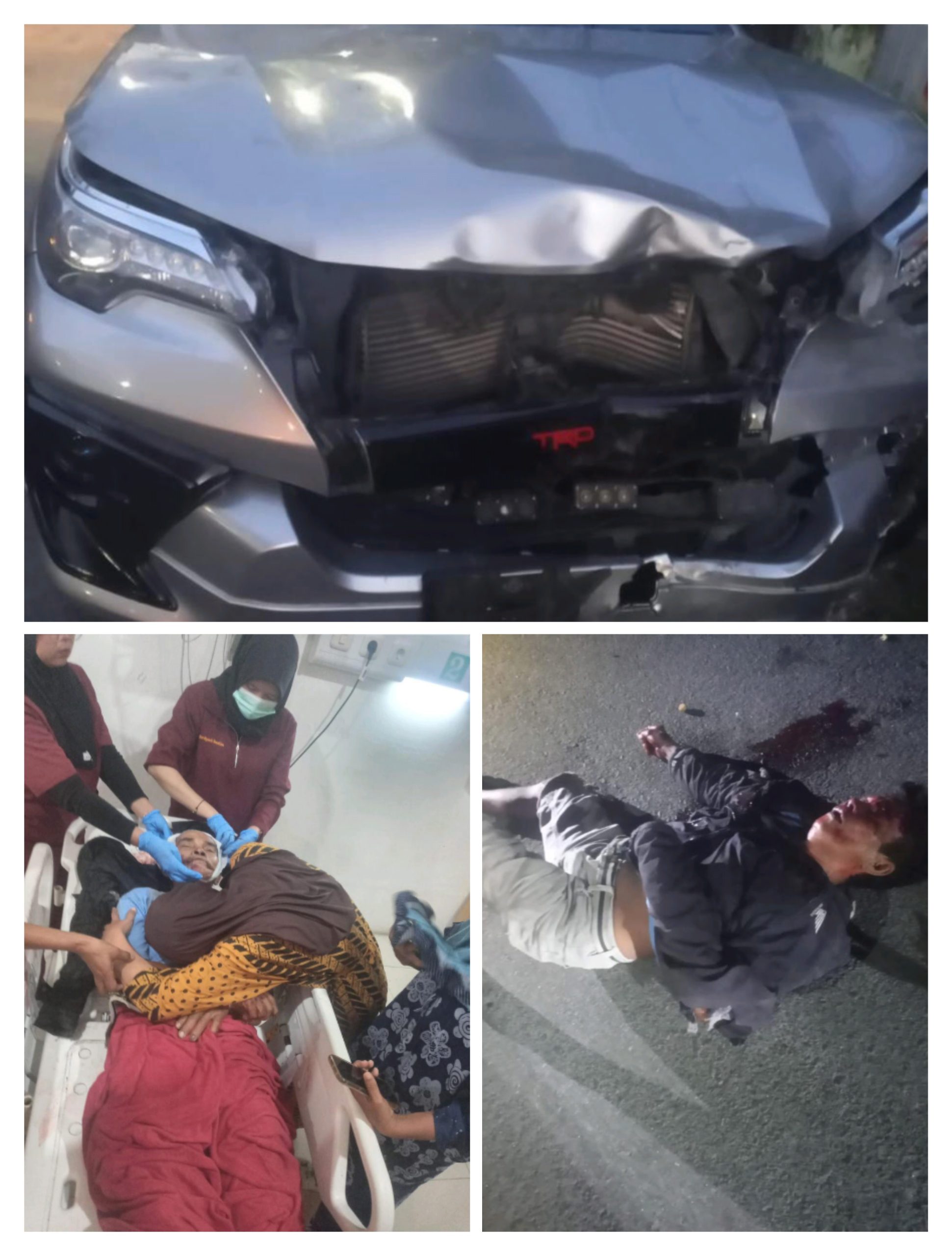 Korban penarik becak barang tewas terkapar ditengah jalan dan mobil Fortuner yang nenabrak rusak parah.(ist)