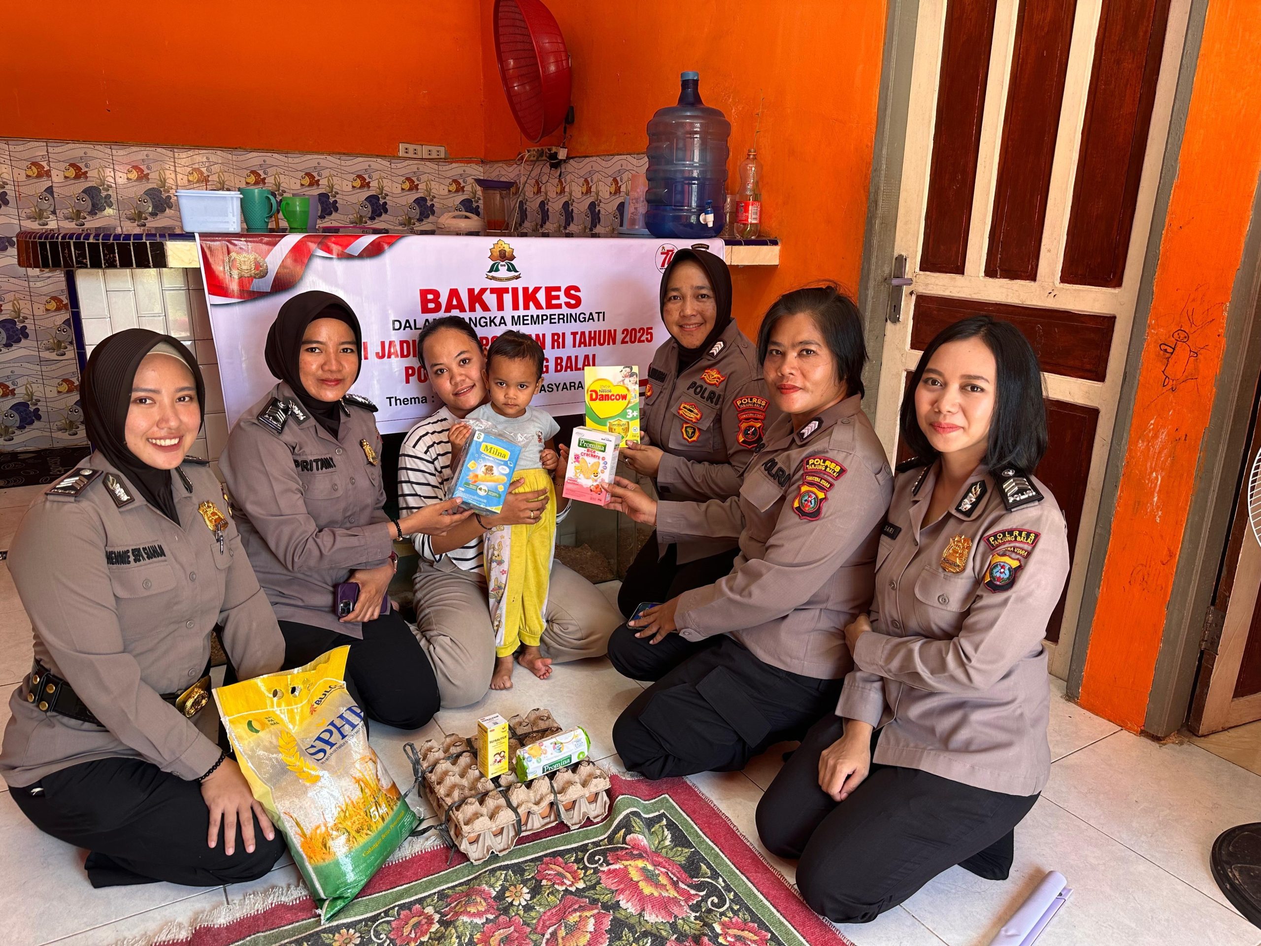Polwan Polres Tanjungbalai melakukan kegiatan Bantuan Sosial dan Bakti Kesehatan berupa sembako dan kebutuhan anak anak terhadap masyarakat yang kurang mampu dan yang sedang sakit serta stunting.