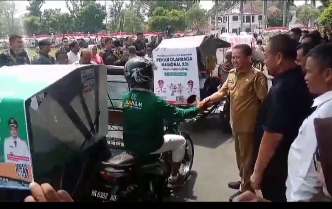 Pj Gubernur Sumut Agus Fatoni Lepas 550 Becak PON XXI Tahun 2024.(ist).