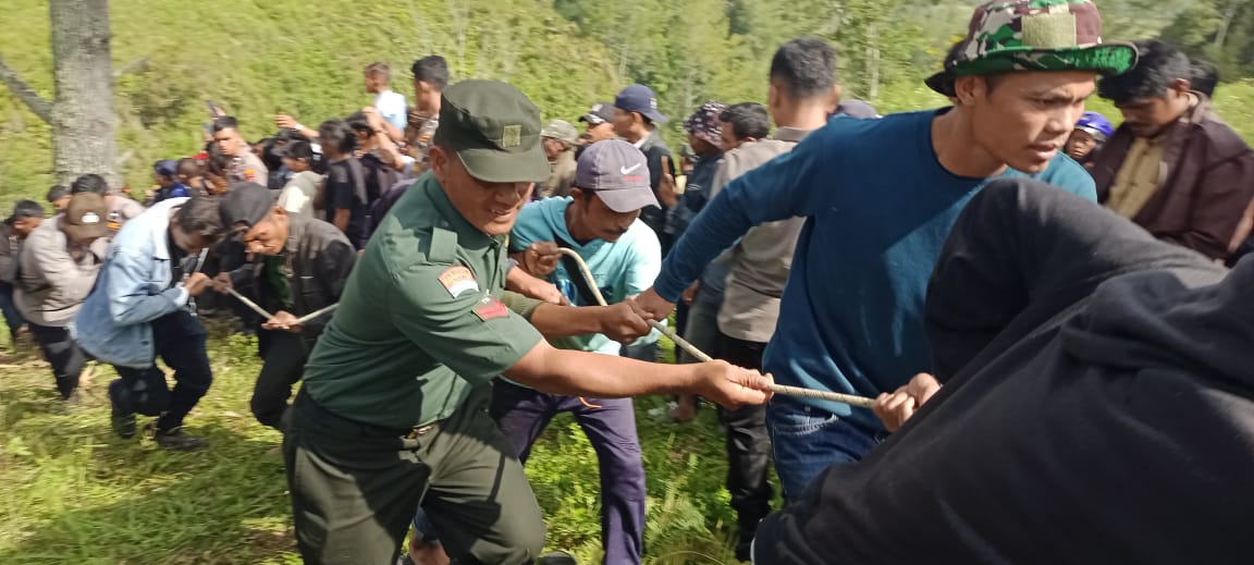 Petugas gabungan bersama warga membantu melakukan evakuasi korban yang jatuh di jembatan Siponot Ronggur Nihuta.(ist)