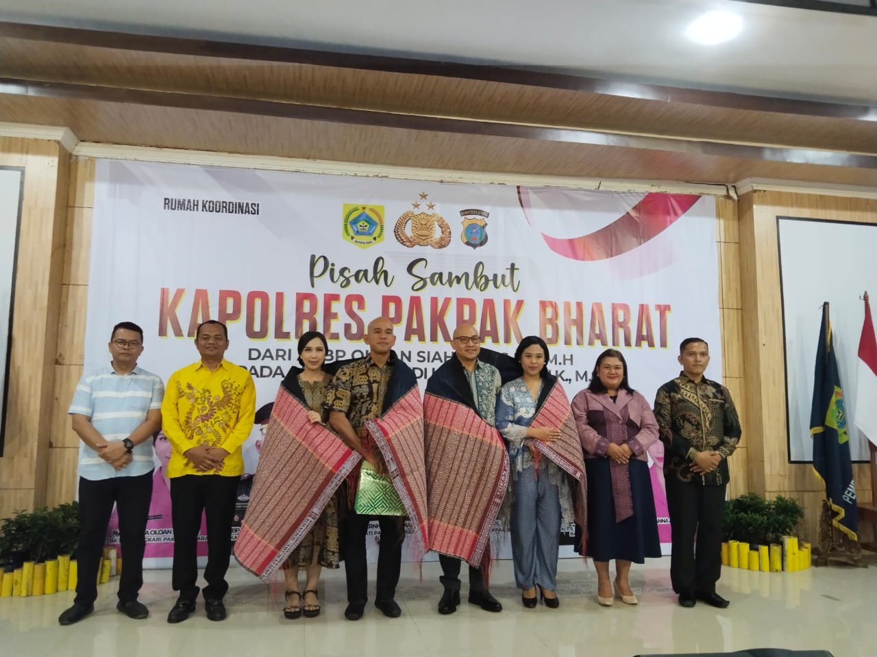Acara Pisah Sambut dan temu ramah AKBP Oloan Siahaan, S.I.K., M.H dan AKBP Pebriandi Haloho, S.H., S.I.K.,M.Si yang di selenggarakan oleh Pemkab Pakpak Bharat .(ist).