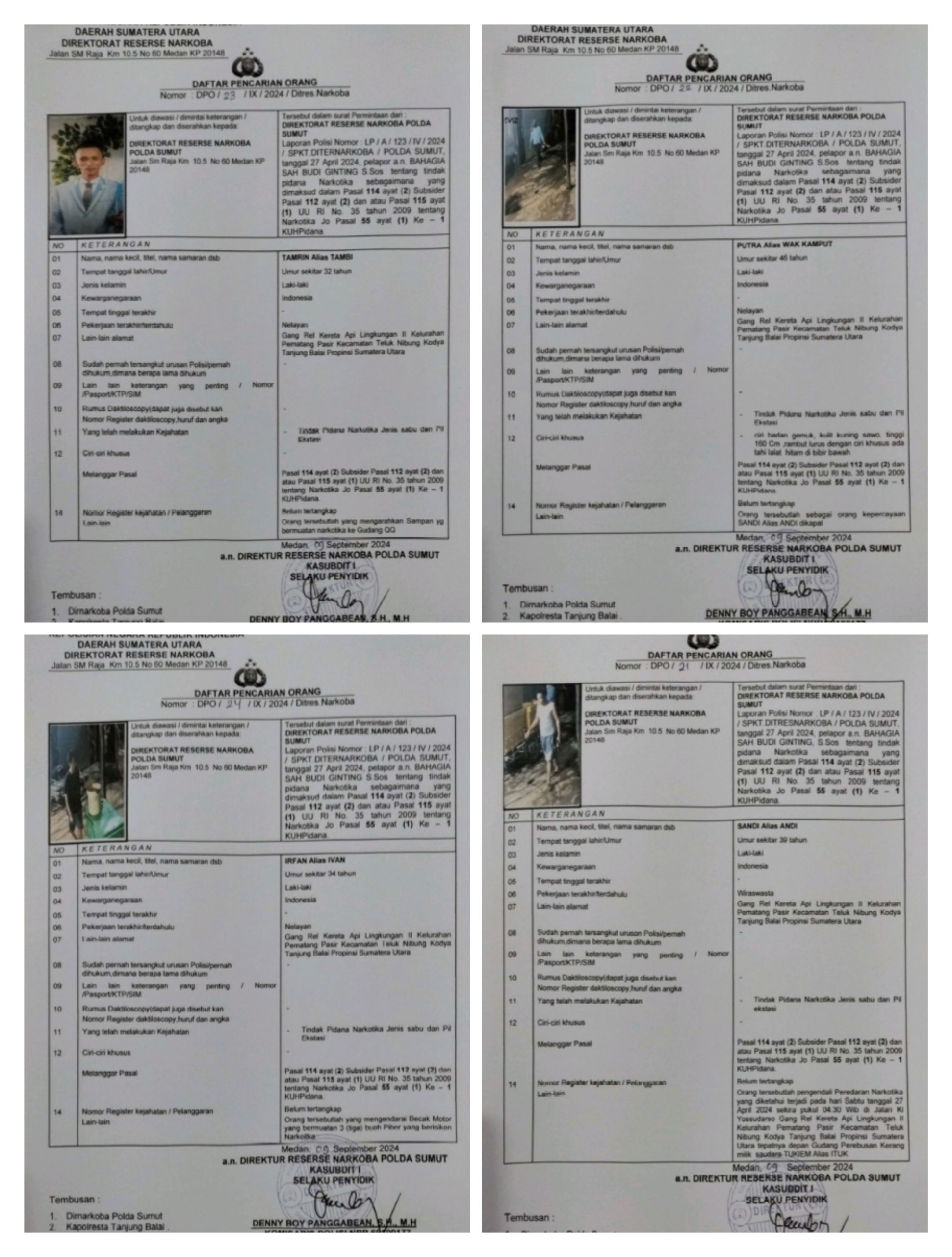 MEDAN, INVOCAVIT.COM – Polda Sumatera Utara terus memburu 4 buronan yang terlibat dalam jaringan narkotika di Kota Tanjungbalai. Pengungkapan kasus ini menghebohkan karena polisi berhasil menyita 117 kilogram sabu dan 20 bungkus ekstasi pada Sabtu, 27 April 2024 lalu.