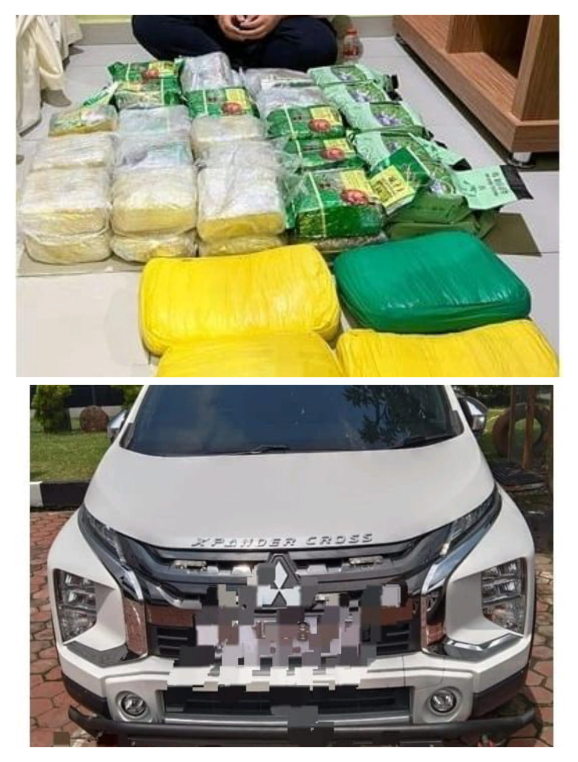 Tersangka berikut barang bukti narkoba dan mobil (ist).