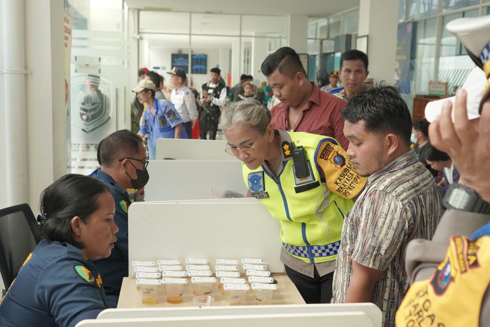 Polda Sumut melakukan test urine kepada para sopir AKDP dan AKAP.(ist)